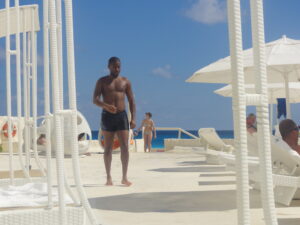 Direction Islas Mujeres au large de Cancun. Un vaste domaine où l’on peut pratiquer un peu tout ce qu’on veut moyennant pesos ou dolares bien sûr (nager avec les dauphins, tyrolienne…etc) Pour moi ça sera farniente, un peu de piscine
