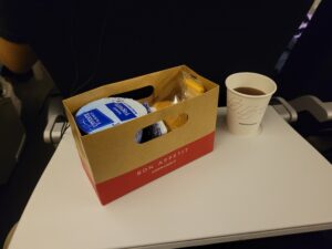 Je mange un peu avant d’embarquer