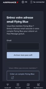 Bizarrement ici, pour se connecter au Wifi, on demande d’avoir un compte Flying Blue. Les autres compagnies comme Singapore Airlines ont le même principe : gratuit pour les membres de leur programme.