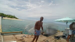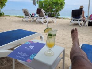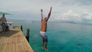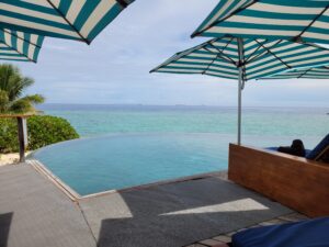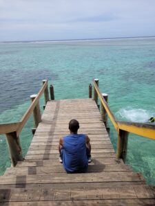et au bout du ponton…l’infini de l’océan…je réalise que je suis à l’autre bout du monde dans cette immensité silencieuse. La météo n’est pas au ciel bleu dégagé, mais il fait chaud voire lourd et c’est pour moi très agréable