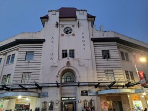Il y a une altère piétonne menant à la gare routière avec les des échoppes