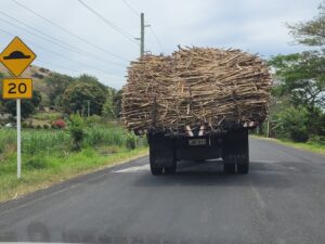 Je croise des camions chargés de canne à sucre. Il y a effectivement une industrie sucrière sur l’île et c’est la récolte.