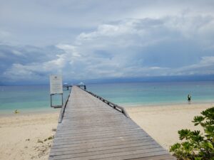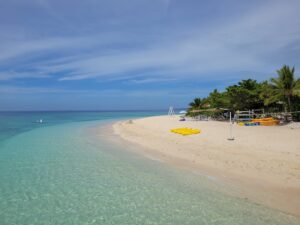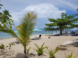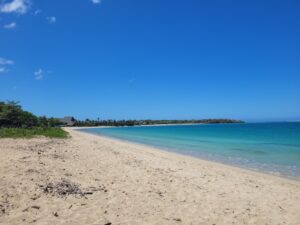 Direction l’une des plus belles plages de l’île principale. Quasi déserte