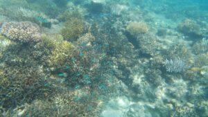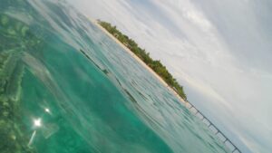 Une vue de l’île depuis le récif