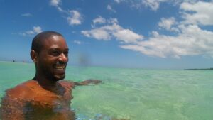 Et je découvre une plage de sable blanc magnifique