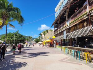 Du côté d’Orient Bay, il y a un lieu animé (restaurants, salle de spectacle)