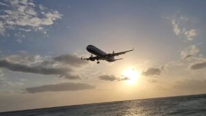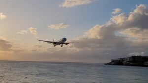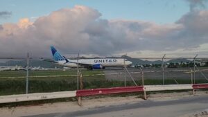 A l’aéroport Princess Juliana il y a une piste unique et généralement les vents poussent au décollage dos à la mer