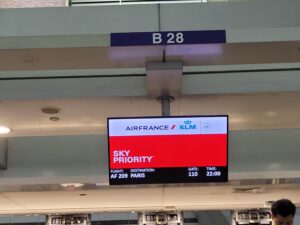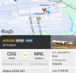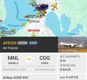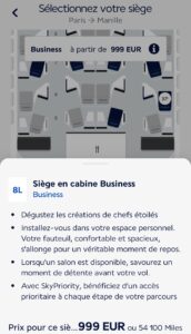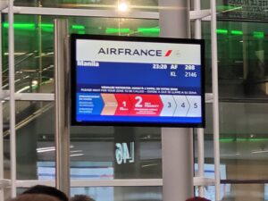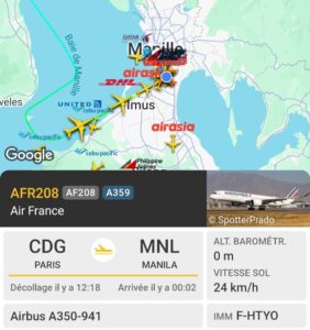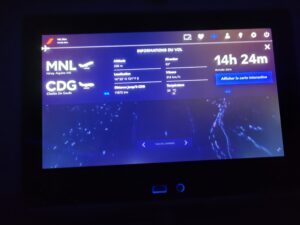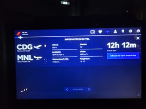 Me voilà de retour à Manille mais cette fois-ci en direct avec Air France. A l’enregistrement on me propose un surclassement. Bon j’avoue que même avec les miles c’est un peu cher d’autant que j’avais à la base un siège en Premium. Mais le vol étant assez long, je succombe