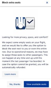 Mais depuis les Philippines, on peut bloquer le siège à côté de soi moyennant paiement
