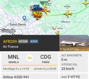 La durée est affichée! 14h24! c’est à date mon vole le plus long. Le précédent était toujours avec Air France Osaka (KIX) à CDG de 14h12 minutes