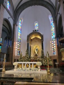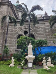 A l’extérieur, des statues et lieux de recueillement/prière à la vierge Marie