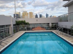 Depuis le roof top de l’hôtel, la piscine et vue à 360° sur la ville