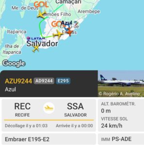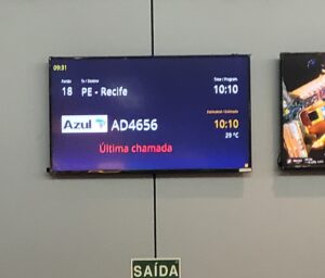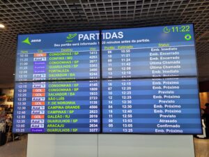 La suite du voyage vers Salvador. Tableau des départs car l’escale est courte : à peine 50 minutes